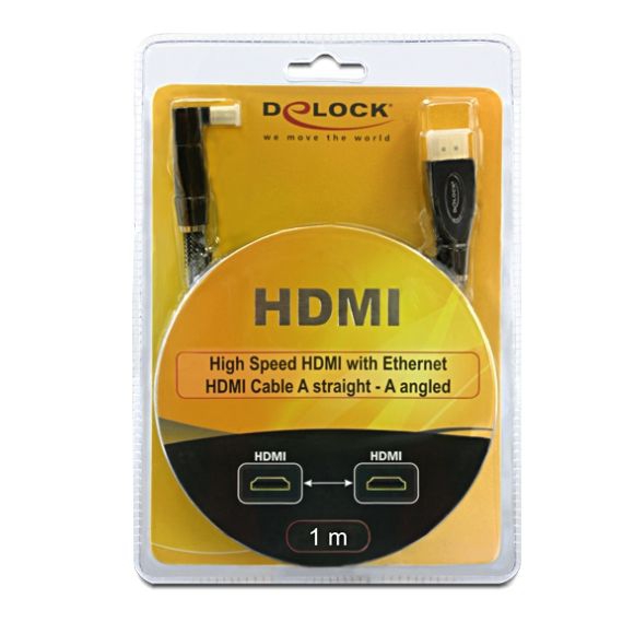 90° angled High Speed HDMI cable with Ethernet, premium quality + textile coating, 1m