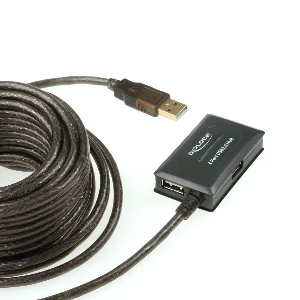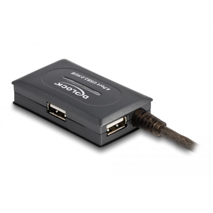 This USB extension cable by Delock can be connected to a USB port of your computer and enables an extension of 10 m. You can connect up to four USB devices to the Hub. In case these USB devices do not have an own power supply you may need an optional power supply, e.g. Navilock 41337, which can be connected to the Hub.