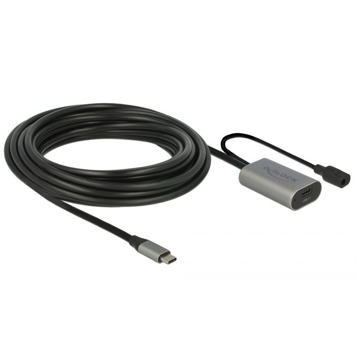 This active USB cable by Delock can be used to extend a USB connection by 5 m. The cable has an additional DC power socket to which an optional power supply can be connected. This ensures optimum data transmission even when used with powerful devices such as a 2.5″ hard drive.