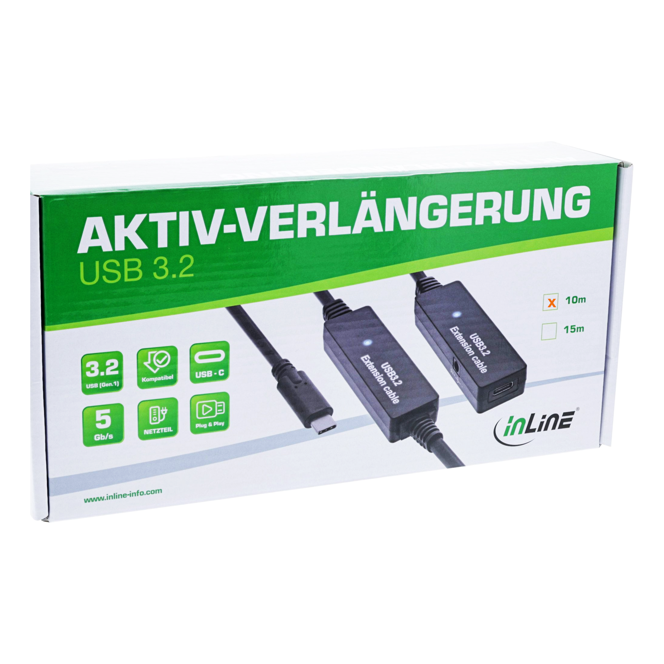 USB C to C active extension, 10m, 5 Gbit/s, USB Type-C™ male to USB Type-C™ female, USB 3.2 Gen.1, integrated signal amplifiers, power supply included