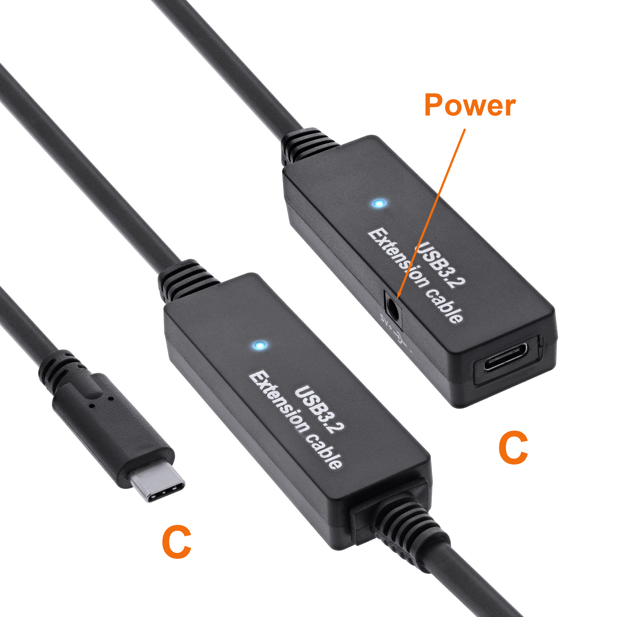 Active USB extension C to C, 5 Gbit/s, 10m, with power supply