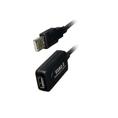 Active USB 2.0 extension cable with integrated amplifier (booster), 5m, plug type A male / port type A female, colour: black
