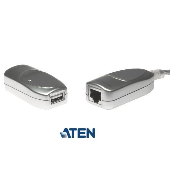 USB line extender: active extension with base and remote module, for CAT.5 patch cable (not included), 12 Mbps (USB 1.1), up to 60m, colour: silver, from ATEN, item UCE60 (USB-1016)