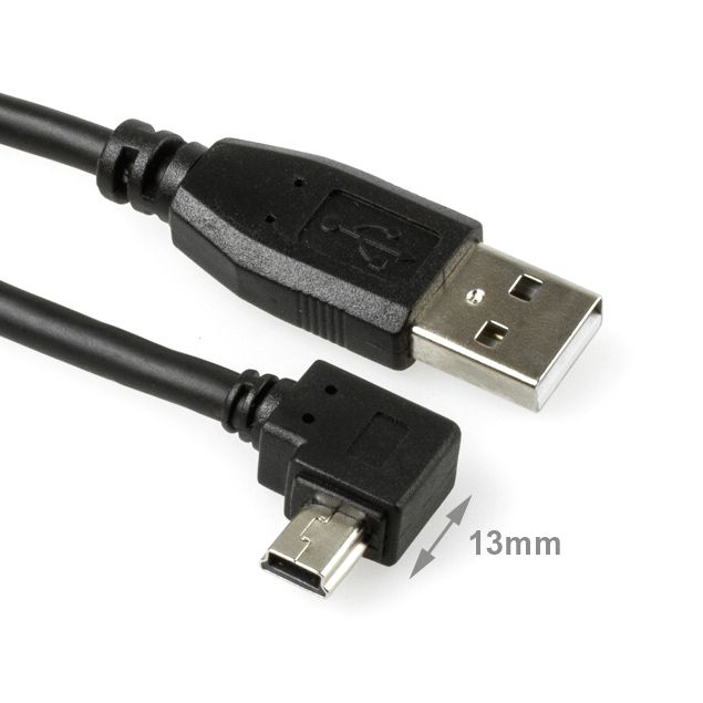 - USB 2.0 connection cable with Mini B angled plug 90°