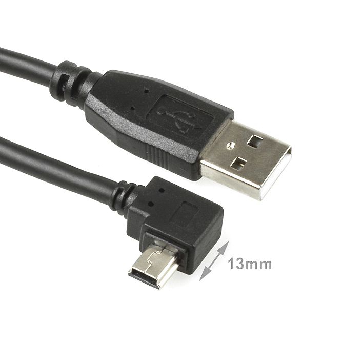 - USB 2.0 connection cable with Mini B 90° angled plug