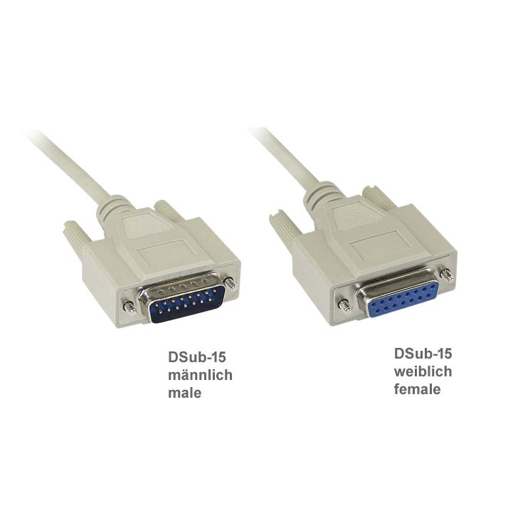 Cable DB15 male to DB15 female, 1m, screws on both sides, e.g. for joystick extension