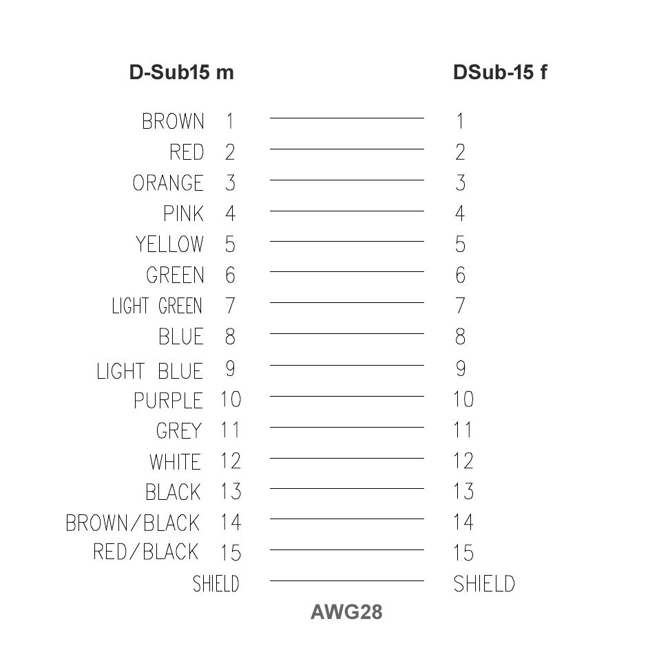 Cable DB15 male to DB15 female, 5m, screws on both sides, e.g. for joystick extension