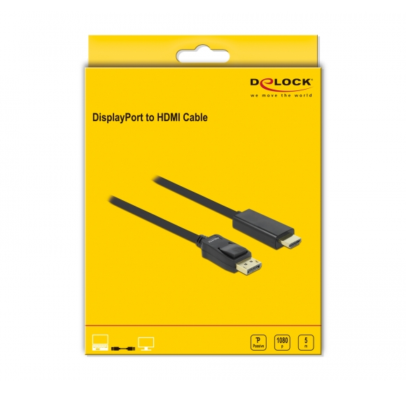 DisplayPort to HDMI cable, 5m, double shielded, gold plated plugs, DP 20in male to HDMI A male, colour: black