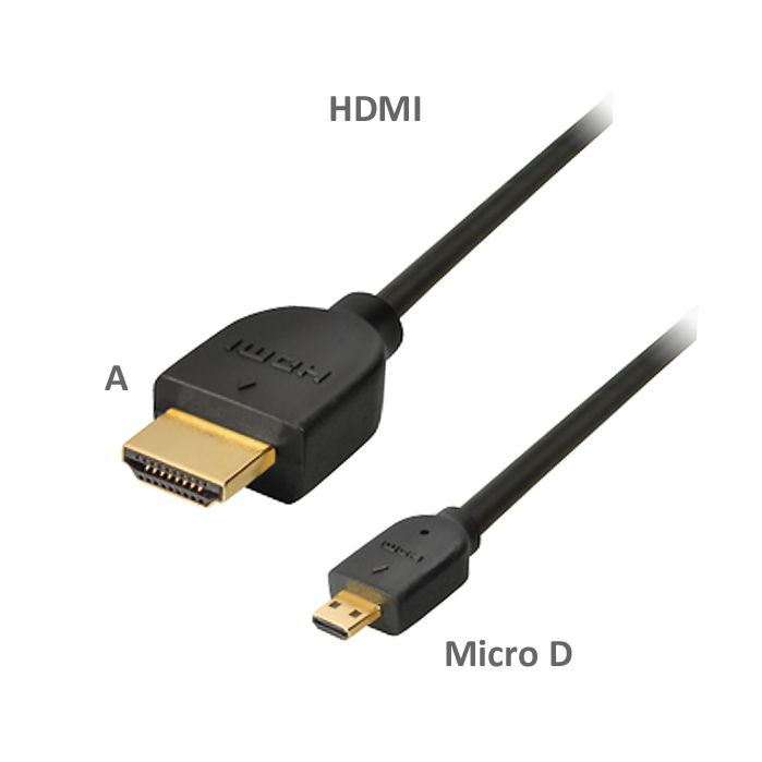 - connector 2: HDMI™ MICRO plug type D (very small size: 6.4mm wide, 2.8mm high, 19-pin)
