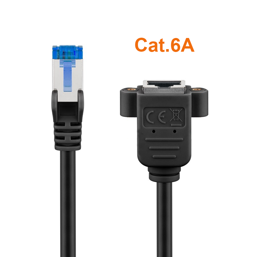 Cat. 6A Panel Mount Cable, RJ45 male-female with 2 screws, 1m