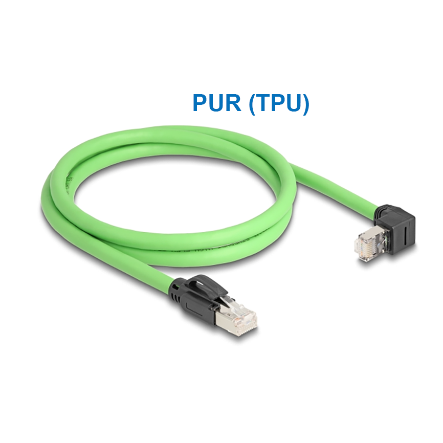 Cat.6A network cable 1x RJ45 angled UP, PUR (TPU), suitable for drag chains, 1m
