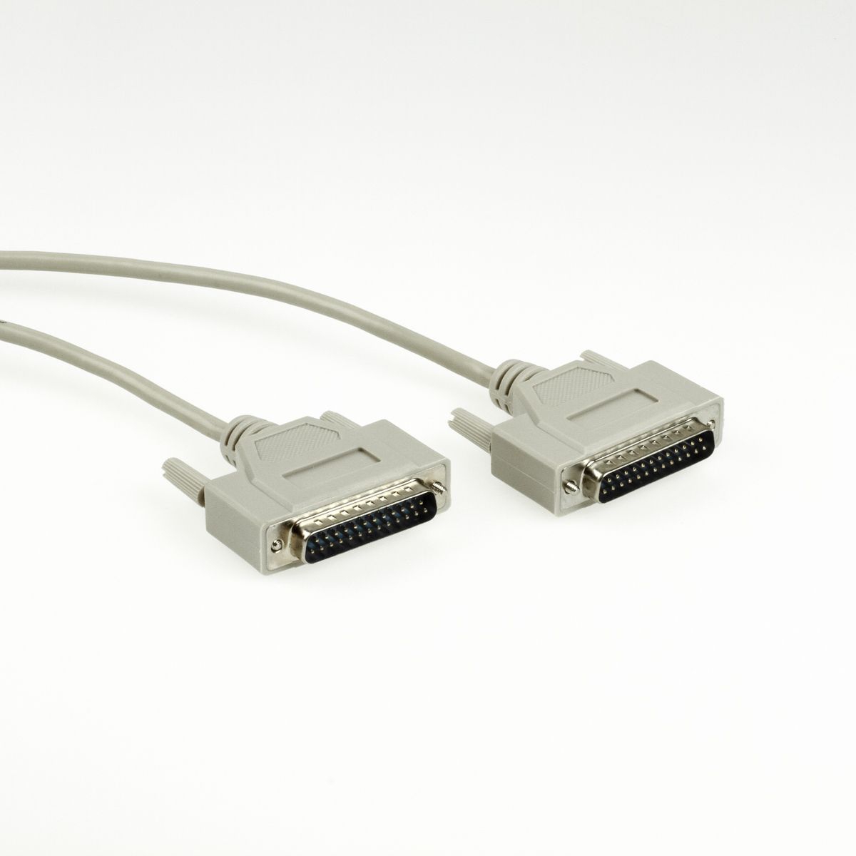 Data cable with 2x DB25 male, length: 3m, connection 1-to-1 (all 25 pins), molded plugs, shielded, e.g. for RS232, LPT data switches, serial/parallel