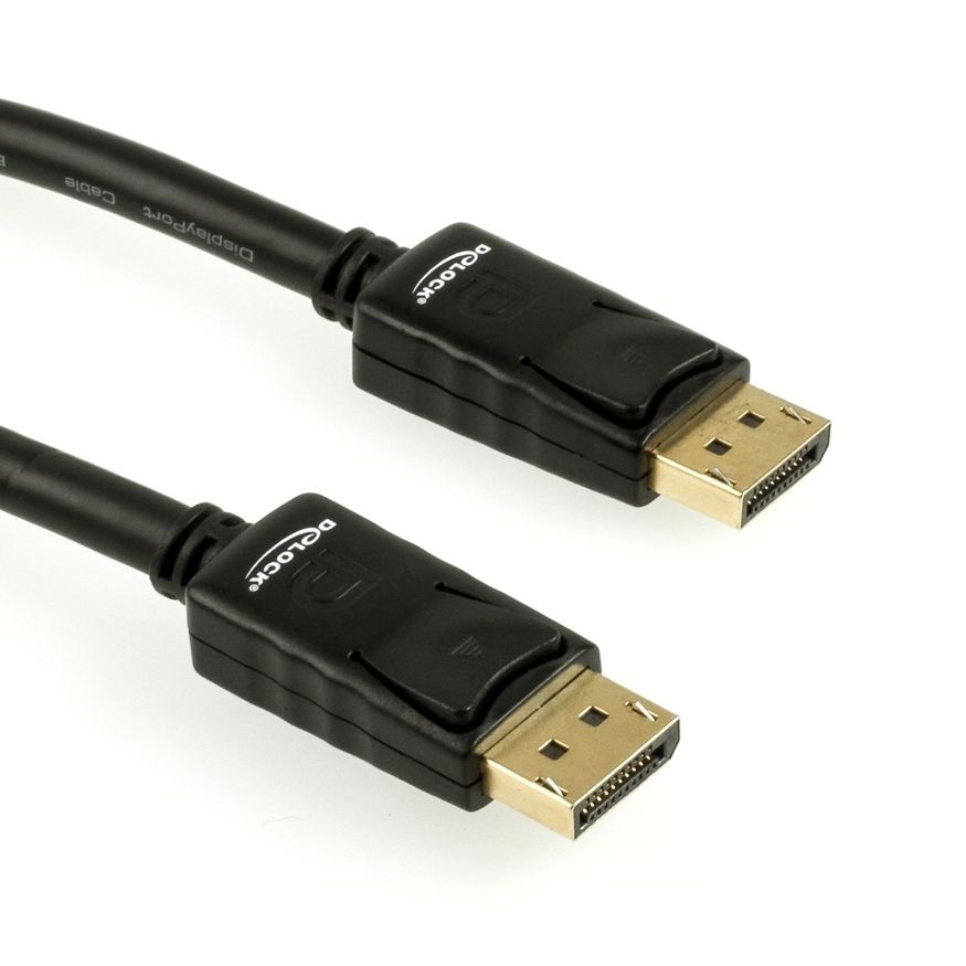 DisplayPort cable, 1m, PREMIUM quality: double shielded, 4K ready, for high resolution digital display & digital audio, bi-directional communications, 20 pin connector with locking function on both sides, colour: black, pin 20 connected (supports 3.3V)