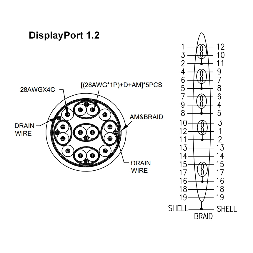 - DisplayPort™ connector on both sides (male, 20-pin)