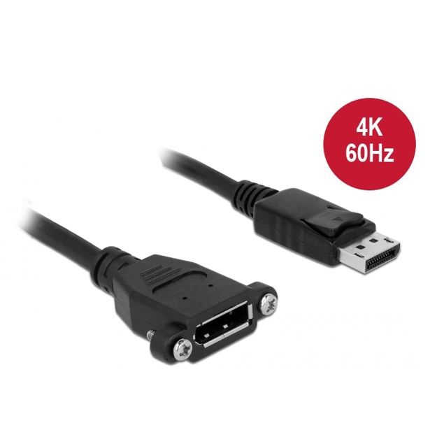 DisplayPort panel mount cable, 1m, DisplayPort female with screws to DisplayPort male, Displayport 1.2 compatible, 4K 60Hz, screw spacing 27 mm