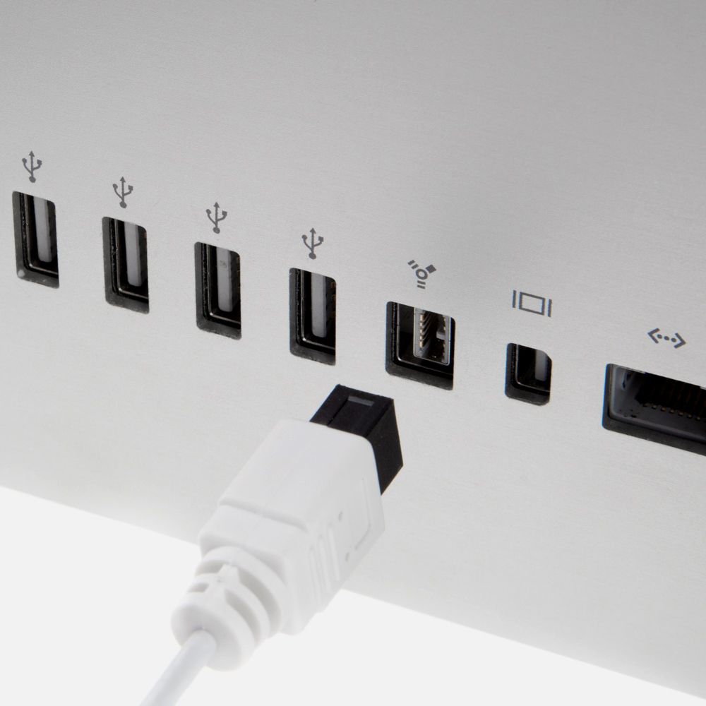 - Firewire 800 connector on both sides (9-pin, type BETA)