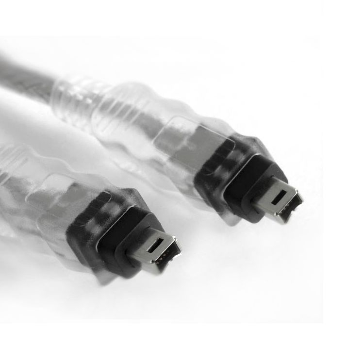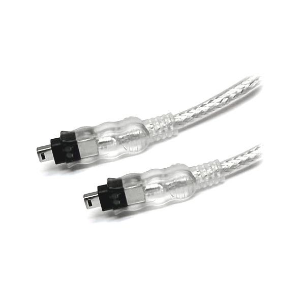Firewire cable 4 pin to 4 pin, 1m, high quality, 400 MBit/s (for IEEE-1394a, i.Link, DV, S400, Firewire 400), colour: silver translucent
