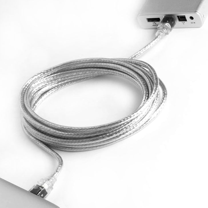 Firewire 800 cable 9-pin to 9-pin, 4.5m, high quality, 800 MBit/s (IEEE1394b), colour: silver translucent
