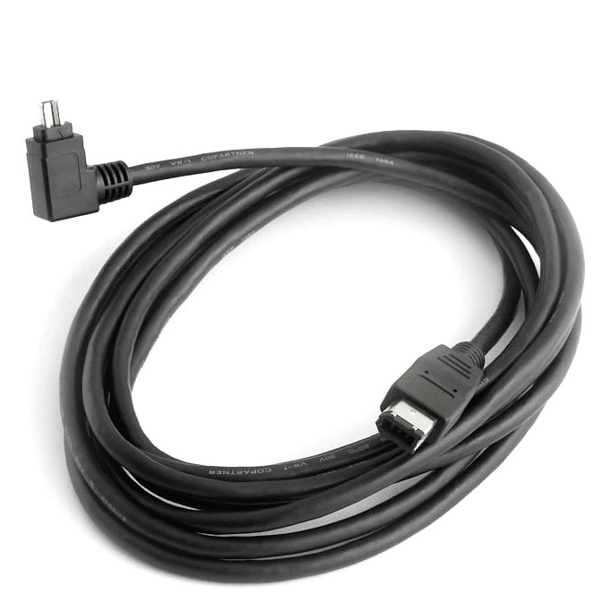 This firewire cable, which was specially manufactured for us, has a 4 pin and a 6 pin plug. The special feature is the 4 pin plug angled to the left. This makes the cable particularly suitable for use in confined spaces at the 4 pin Firewire port. In addition, the angled plug can be much better fixed with adhesive tape to prevent it from slipping out than a straight plug.