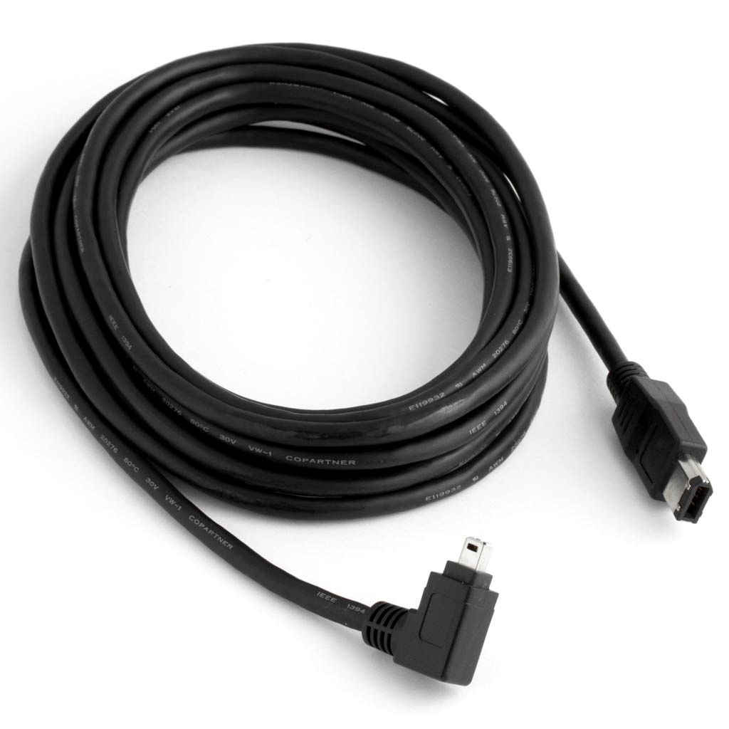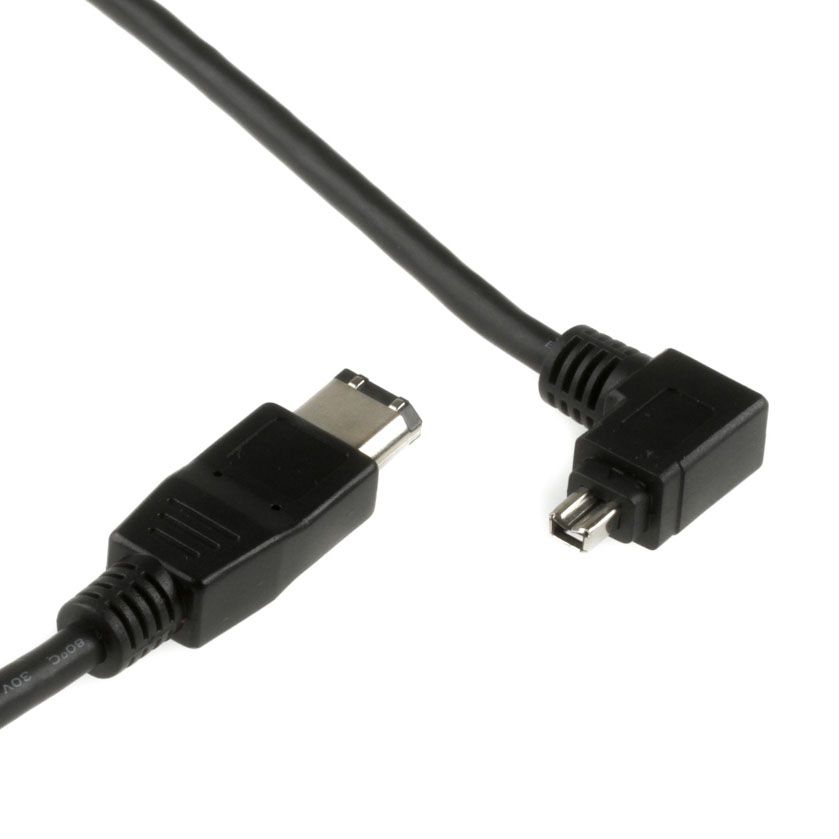 This firewire cable, which was specially manufactured for us, has a 4 pin and a 6 pin plug. The special feature is the 4 pin plug angled to the left. This makes the cable particularly suitable for use in confined spaces at the 4 pin Firewire port. In addition, the angled plug can be much better fixed with adhesive tape to prevent it from slipping out than a straight plug.