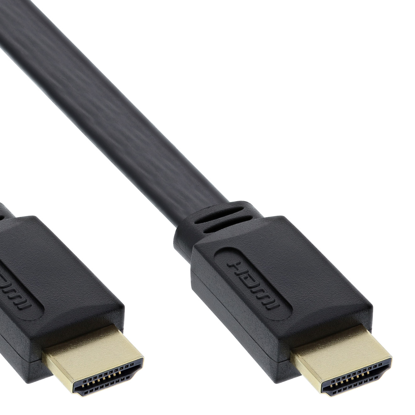 HDMI flat cable for space-saving installation, 4K 2K video support, 19-pin HDMI plug (A) on both sides, transmission of video and audio signals (purely digital), with Ethernet, black, 1m