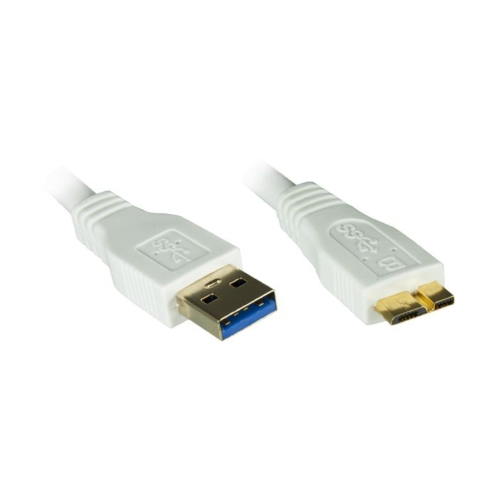 USB 3.0 micro cable: plug USB3 A male to USB3 Micro B male, 2m, USB 3.0 compatible (Super Speed Mode), colour: white
