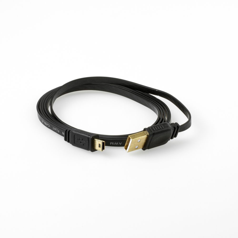 USB Mini B ribbon cable, 1.5m, slim ribbon cable, black, USB A male to Mini B male (5-pin), gold plated plugs