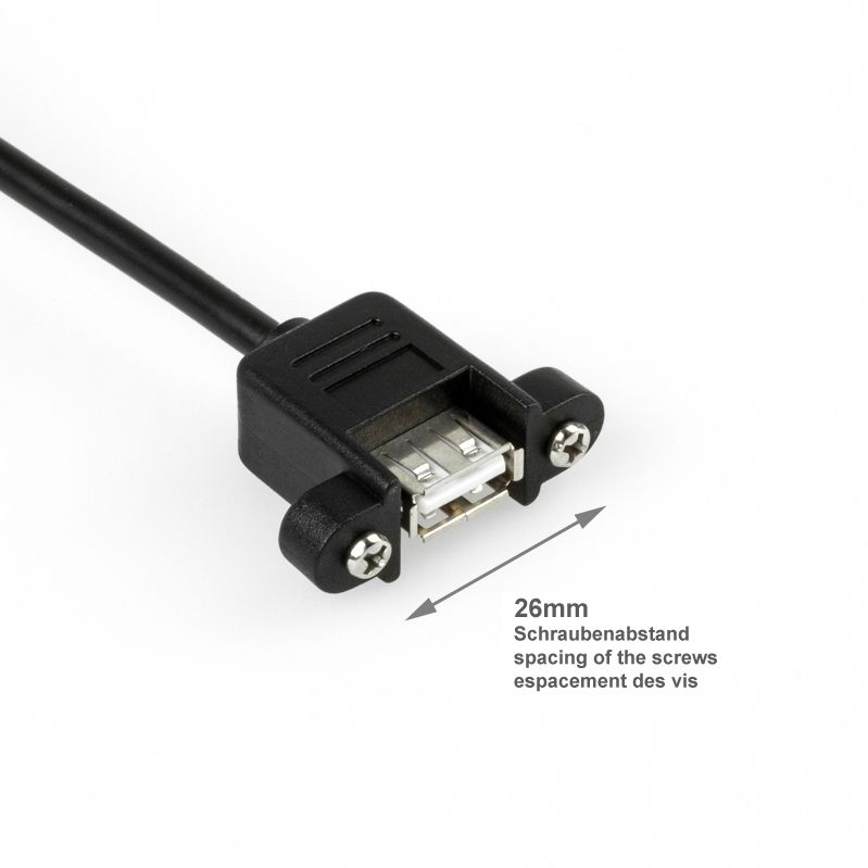 Mountable USB 2.0 cable A female with 2 screws to A male 20cm