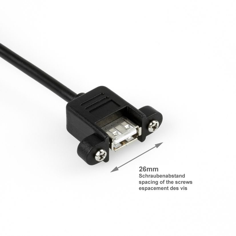 Mountable USB 2.0 cable A female with 2 screws to A male 30cm
