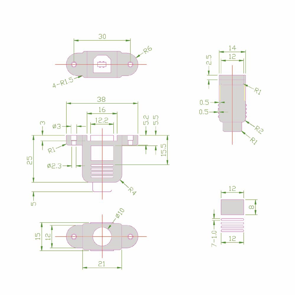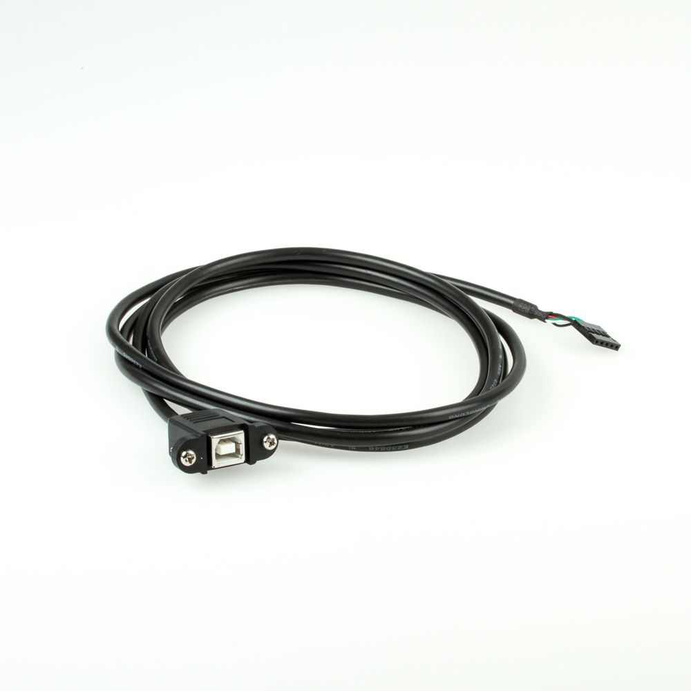 Mountable USB cable for industrial applications: female connector type B (mountable with 2 screws) to board connector (5-pin version, grid 2.54mm), 2m, double shielded, twisted pair, for USB 1.1 und USB 2.0 (up 480 MBit/s)