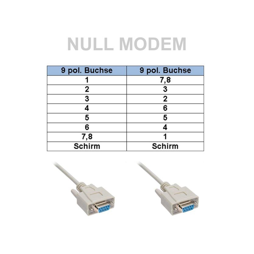 NULL Modem cable 2x DB9 female with Cross Over Pinout 2m