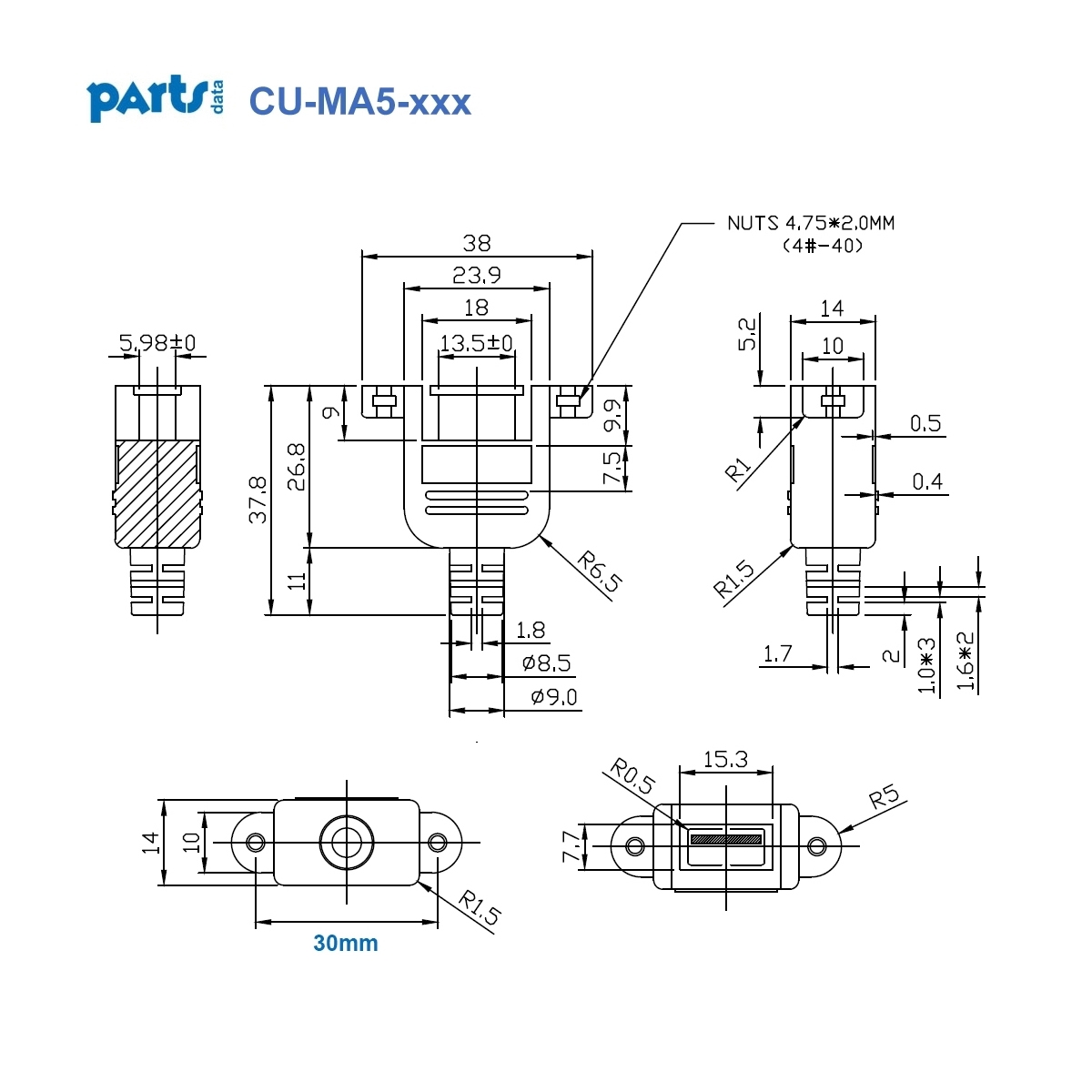 - Screw type: UNC 4-40