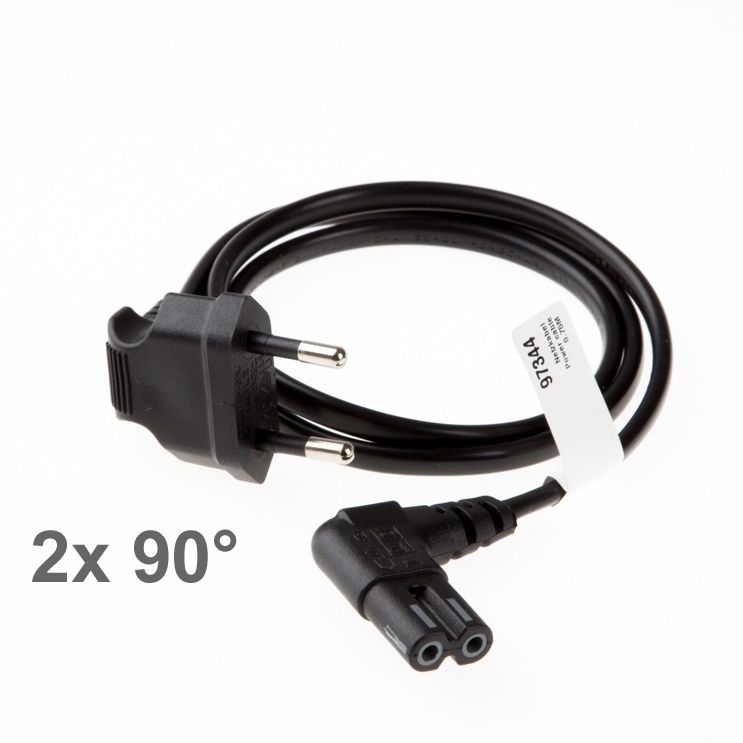 Power cord for Europe with angled plugs on both sides, 75cm, 2 leads, with Euro8 plug
