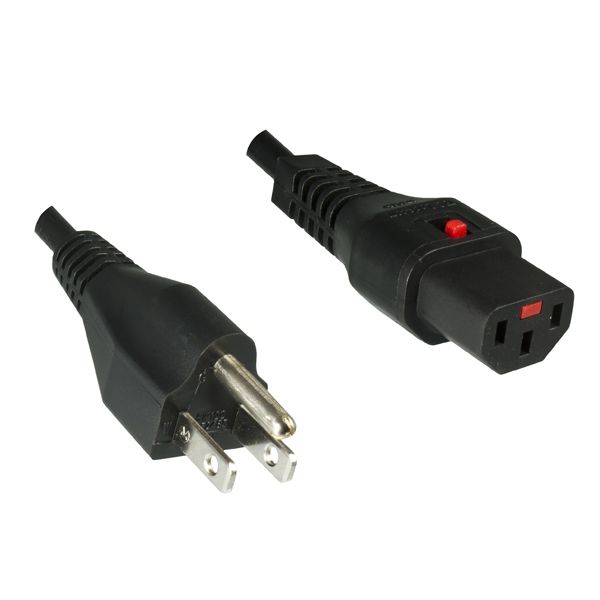 Power Cord, USA (NEMA 5-15P) to Kettle plug IEC60320-C13 with built in automatic connector lock, black, 2m