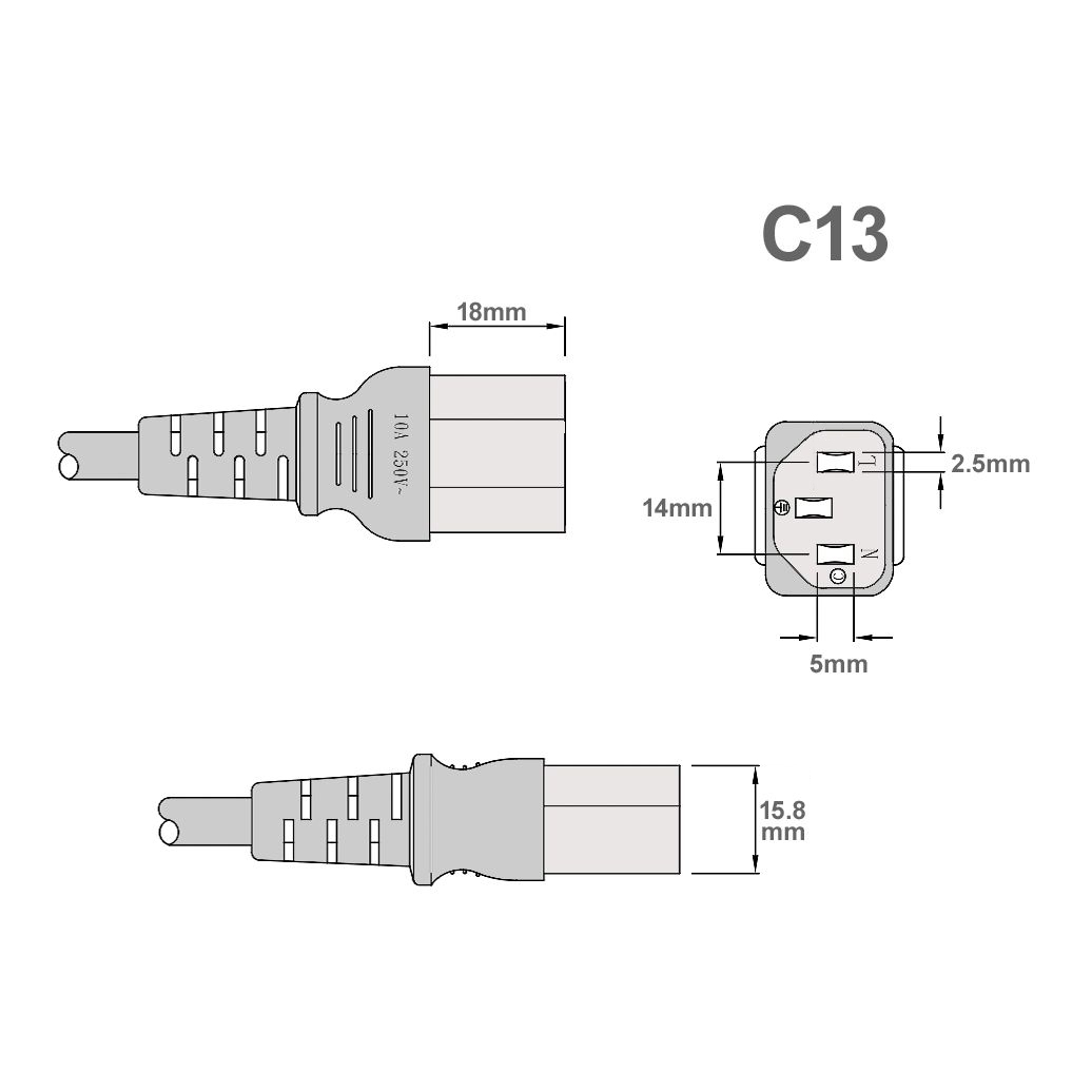 - Appliance plug: IEC C13 (non-heating appliance, straight)