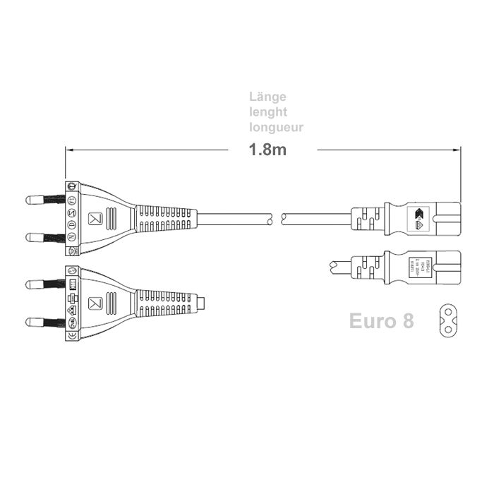 - small flat Euro plug (plug type C) to small appliances Euro 8 plug (type C7)