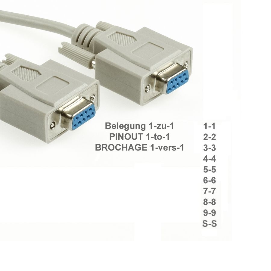 - all 9 contacts connected 1-to-1 (no NULL modem pinout)