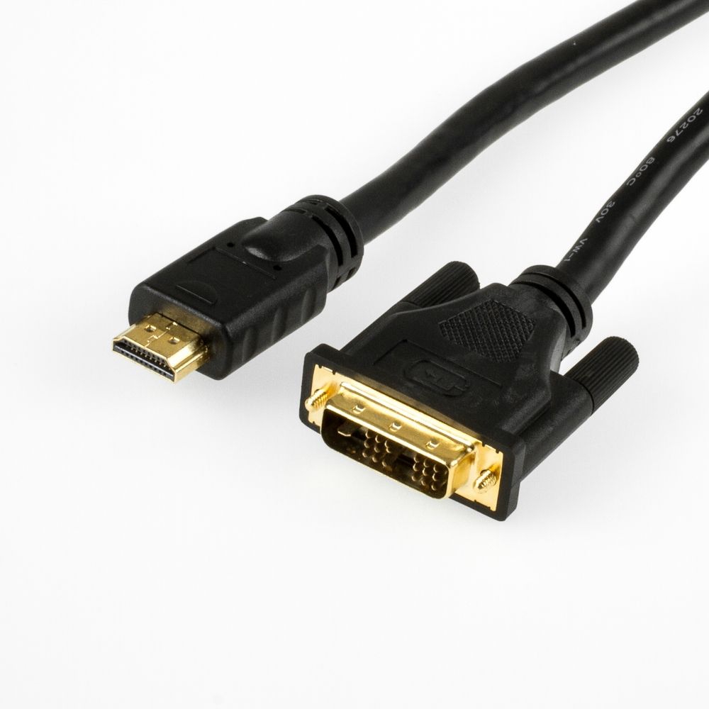 Digital video cable HDMI to DVI, very short 50cm, plug HDMI male to DVI-D 18+1 male, high quality, gold plated contacts, black