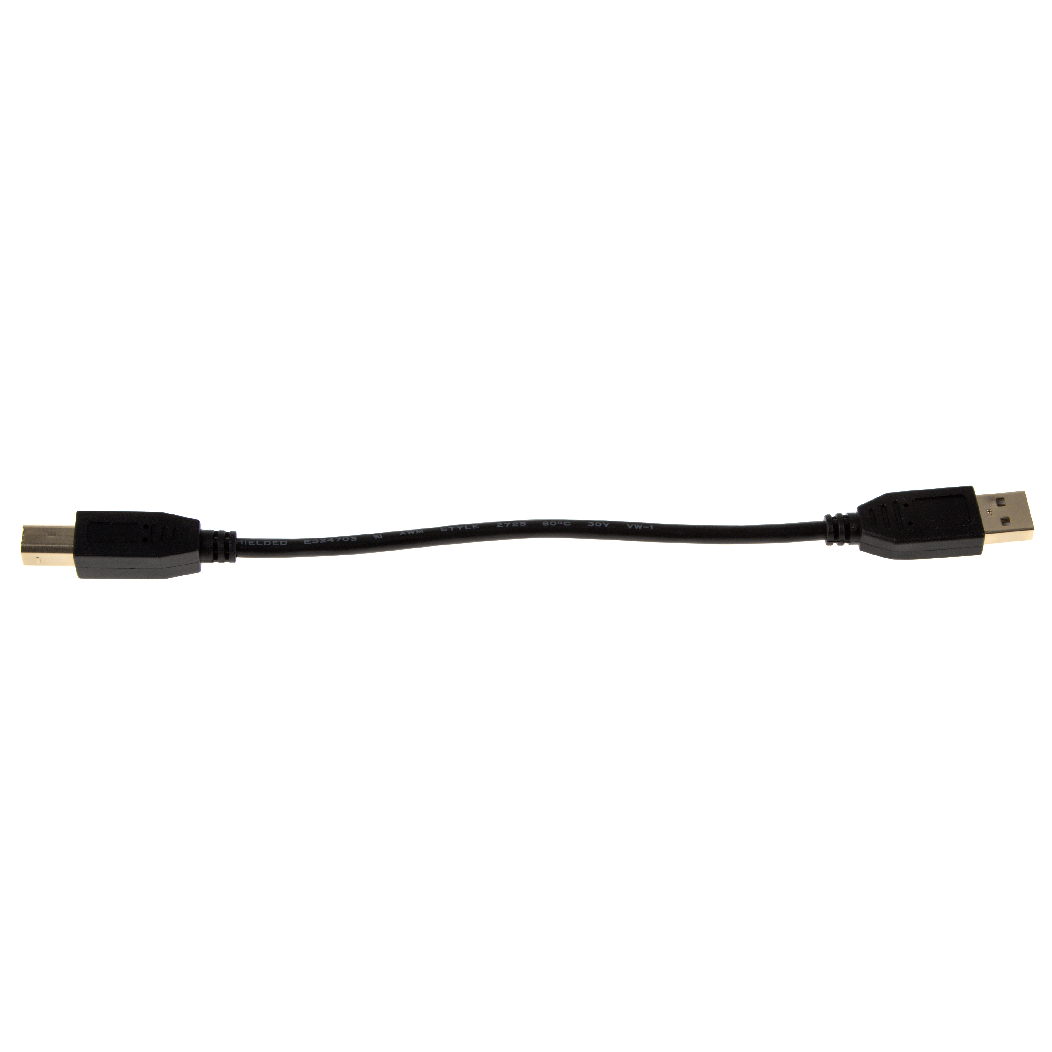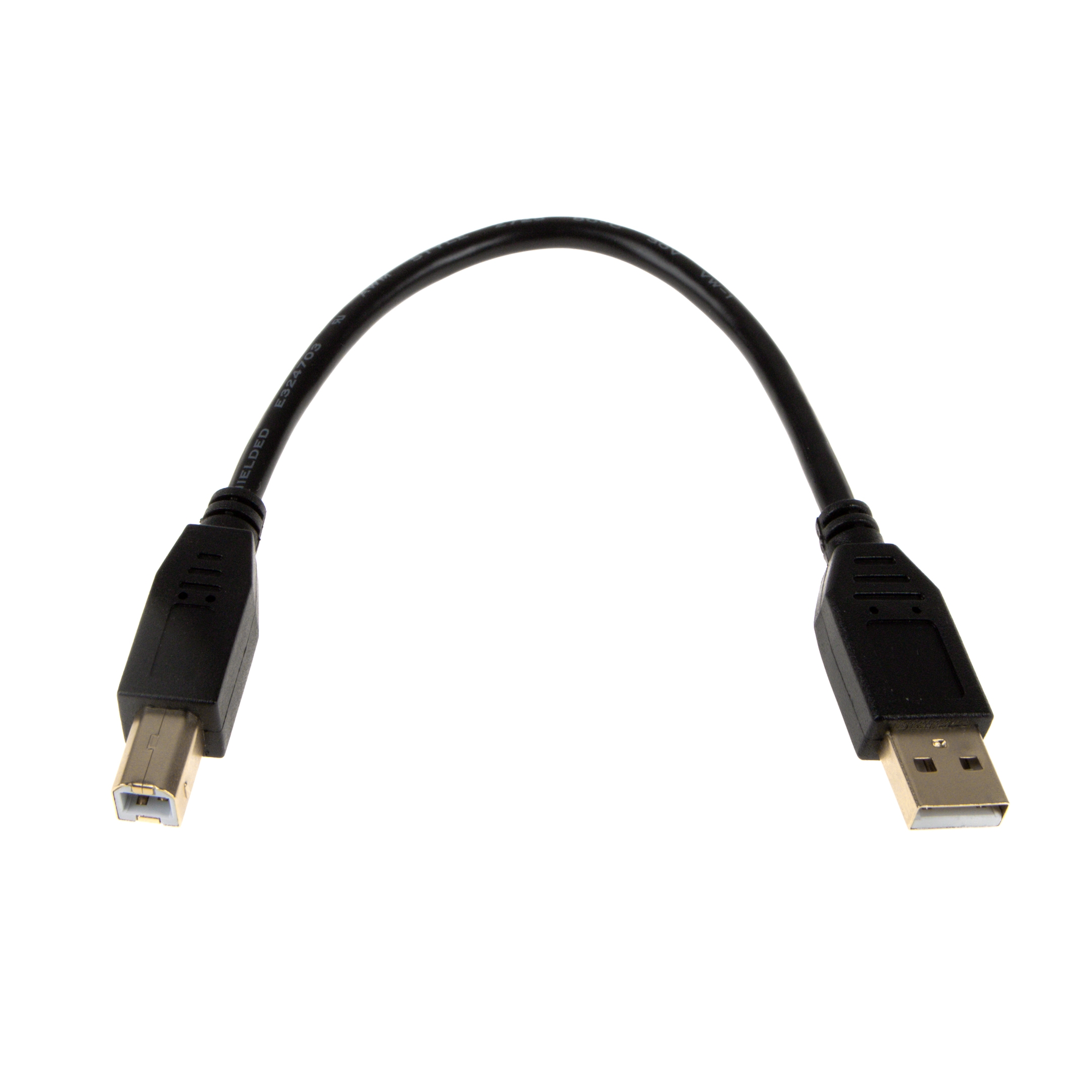 Very short USB 2.0 cable, 20cm, gold plated connectors, for USB 2.0 and USB 1.1, high quality with 28AWG1P / 24AWG2C (CU), USB plug A to USB plug B, colour: black
