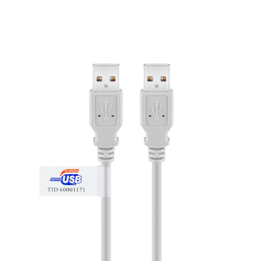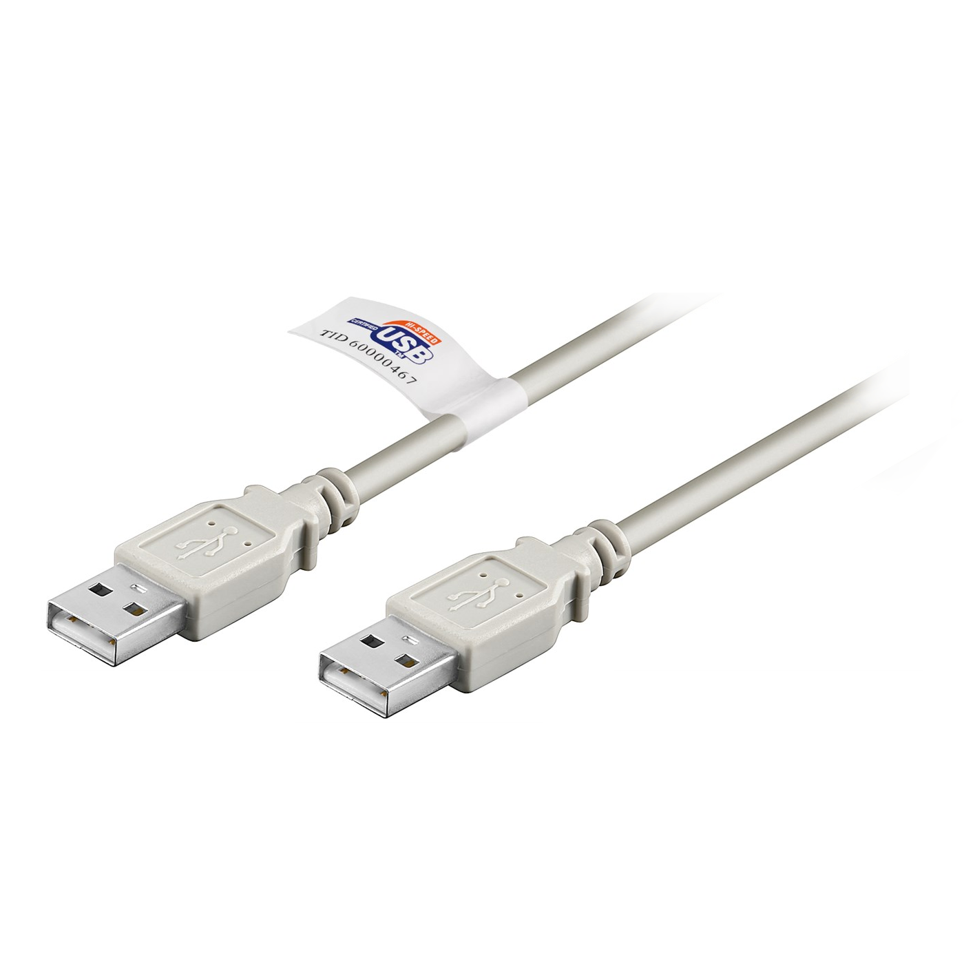 Certified USB 2.0 cable with 2x plug A (www.usb.org, TID no. 60000467), 3m, AWG28/1P AWG24/2C, max. 480 Mbps, grey