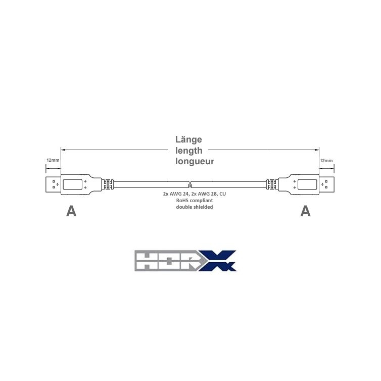 Certified USB 2.0 cable with 2x plug A (www.usb.org, TID no. 60000467), 5m, AWG28/1P AWG24/2C, max. 480 Mbps, grey