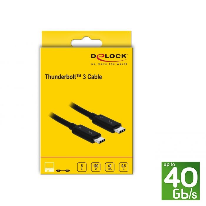Thunderbolt 3 cable, C to C, 40 Gbps, 100W, 5A, 50cm