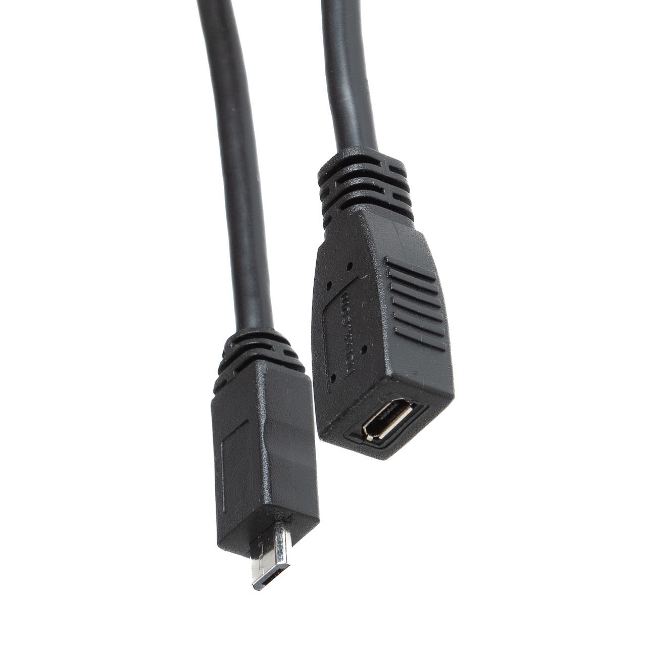 USB 2.0 Micro B extension cable, very short 30cm, type USB Micro B male to USB Micro B female, pinout: all 5 pins connected 1-to-1