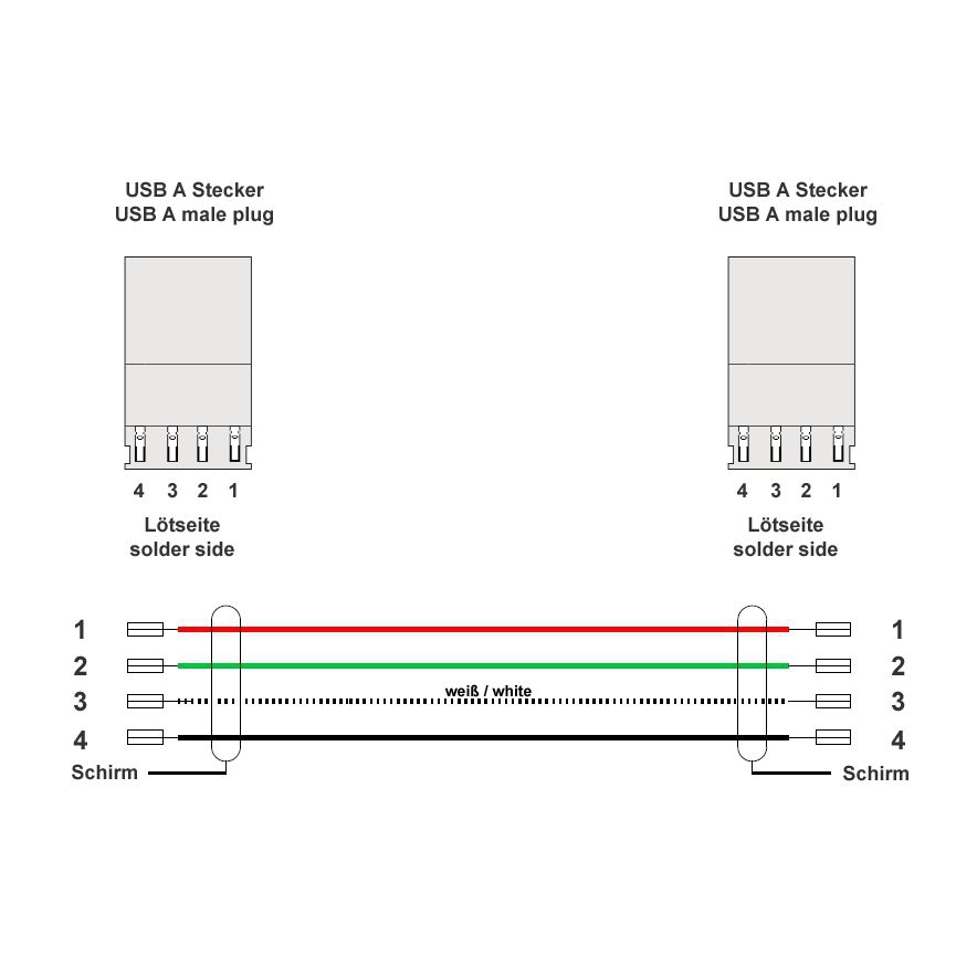 USB cable for drag chains (cable carriers) and industrial applications, 7.5m, for USB 1.1 and USB 2.0, plug USB A male to USB A male, Made in Germany