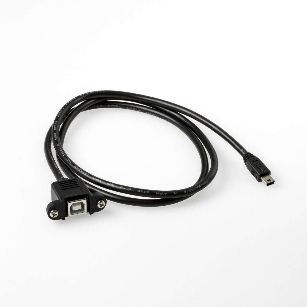 USB 2.0 Panel-Mount cable, USB B female with 2 screws to USB Mini B male, 1m