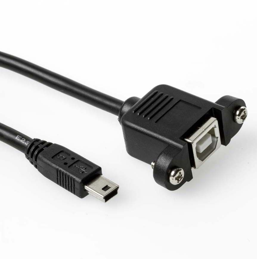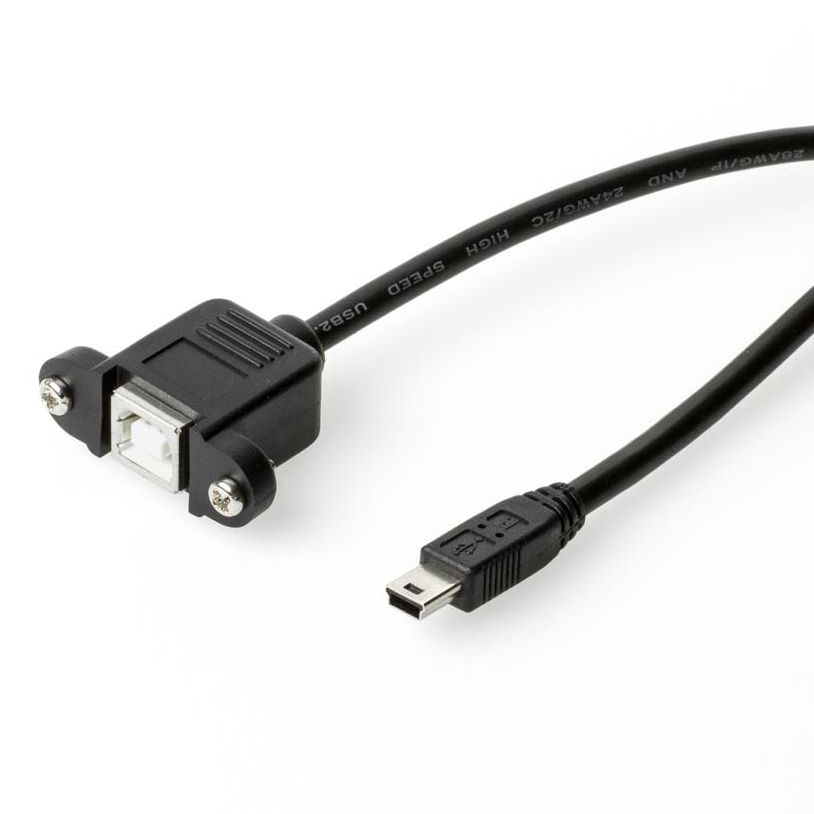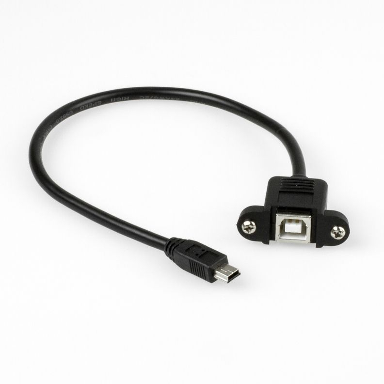 USB 2.0 Panel-Mount cable, USB B female with 2 screws to USB Mini B male, 30cm