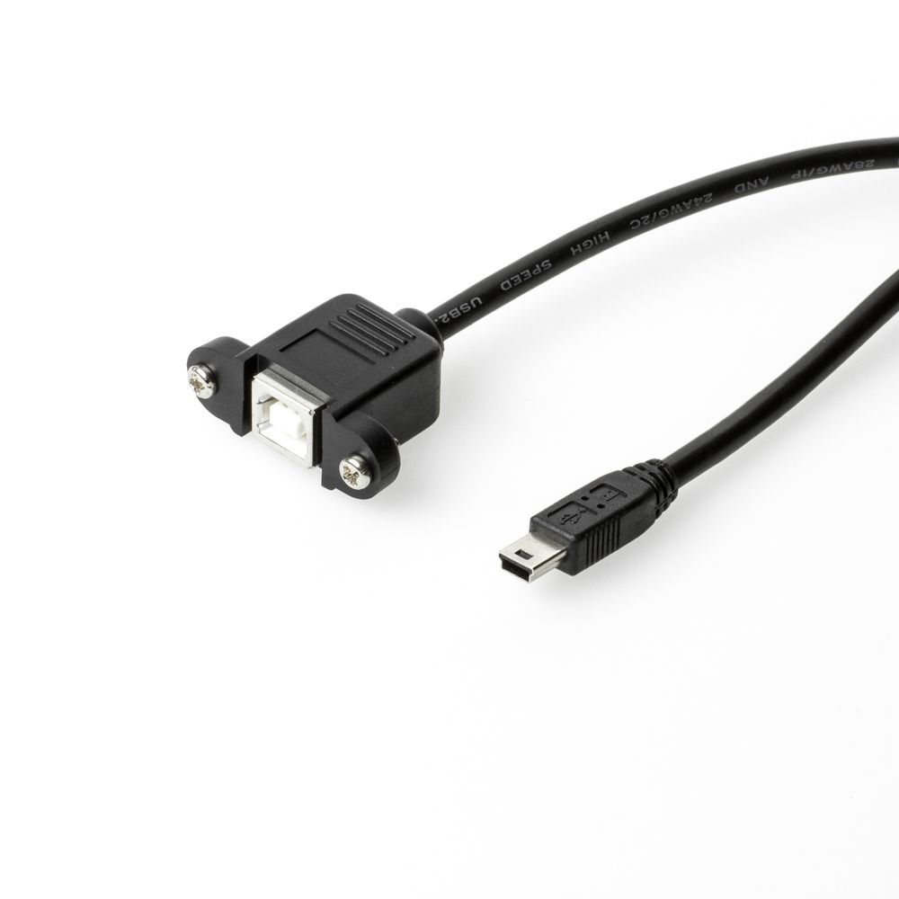 USB 2.0 Panel-Mount cable, USB B female with 2 screws to USB Mini B male, 50cm