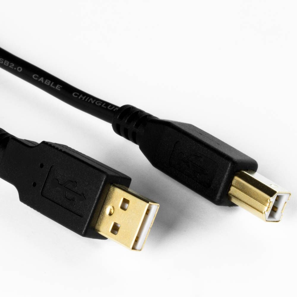 USB cable, 1m, gold plated connectors, for USB 2.0 and USB 1.1, high quality (28AWG1P / 24AWG2C), USB plug A to USB plug B (USB standard), colour: black