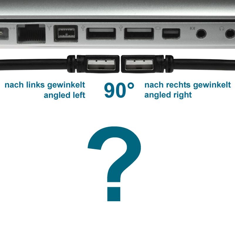 USB 2.0 cable AB, plug A angled RIGHT, plug B angled LEFT, 50cm