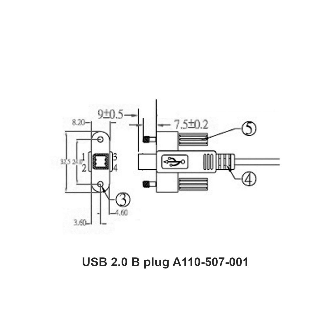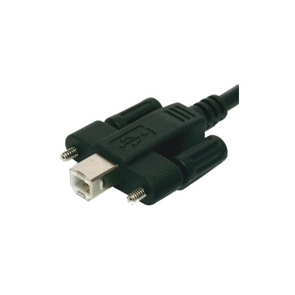 USB cable AB with screws on both sides, 5m, for USB 2.0 + USB 1.1, high quality, screw distance: plug USB A 19mm, plug USB B 24mm, screw type UNC4-40, black